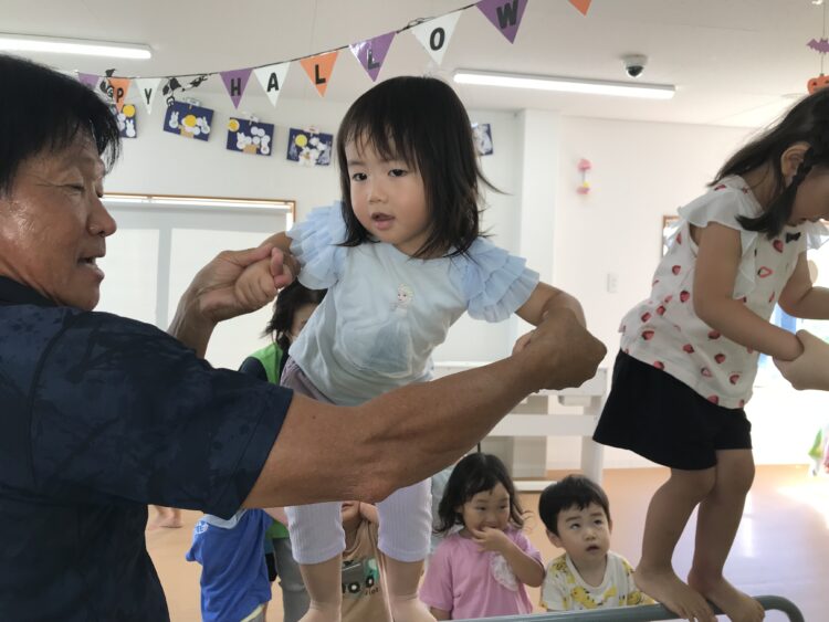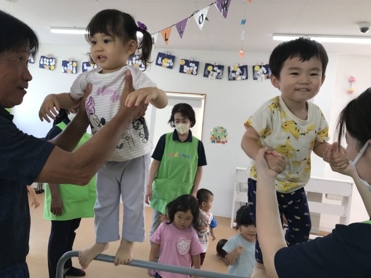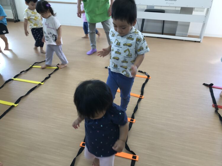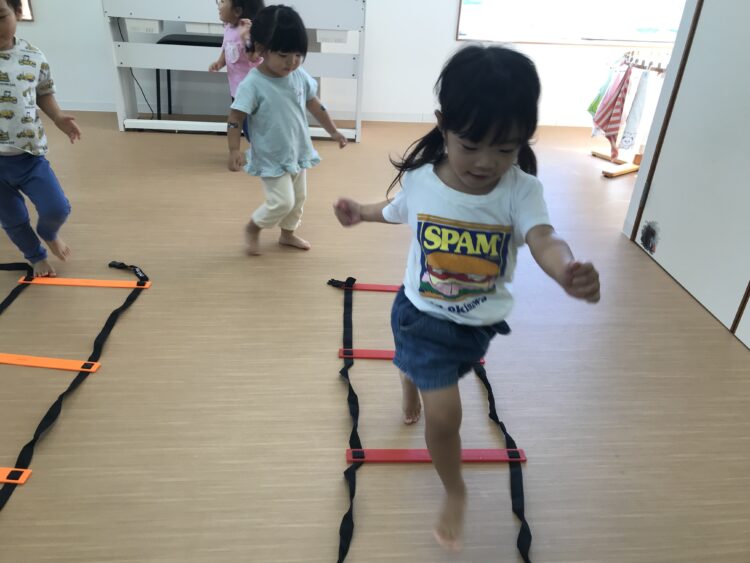 準備体操から元気いっぱいの子どもたち😊 まずはハシゴの上を歩いたり、ジャンプをしました🪜