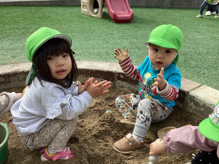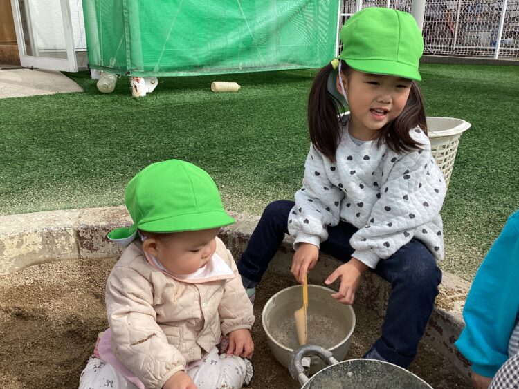 仲良く砂場で遊んでいました