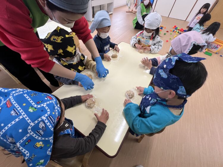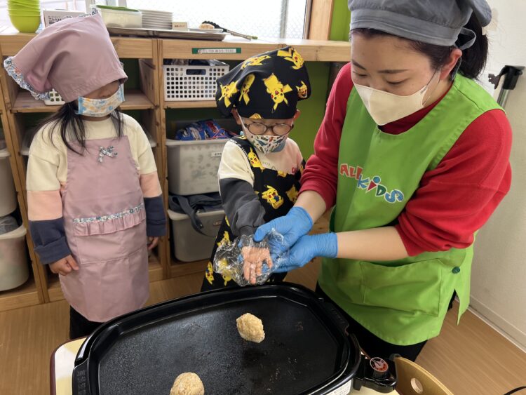おにぎりを自分たちで握って作ります🍙