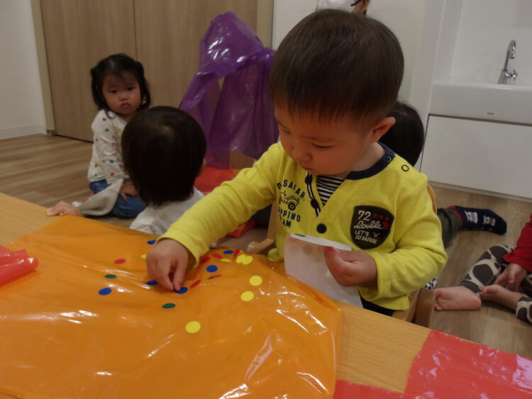 あひる組さんはポリ袋に4種類のシールを貼っていました👀