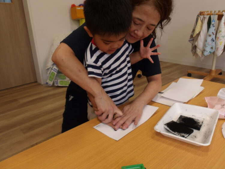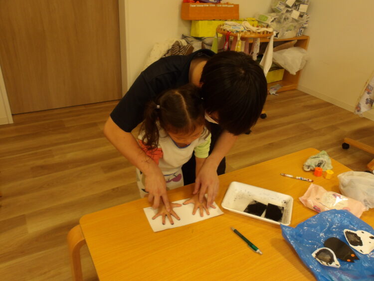最後は手形スタンプでコウモリの羽を作りました🦇