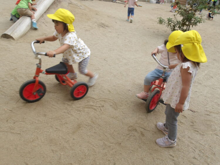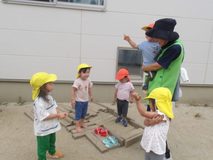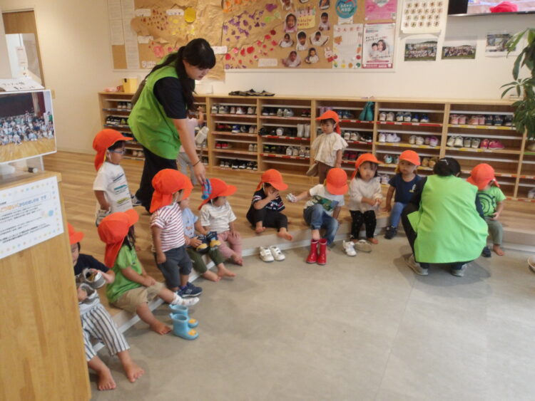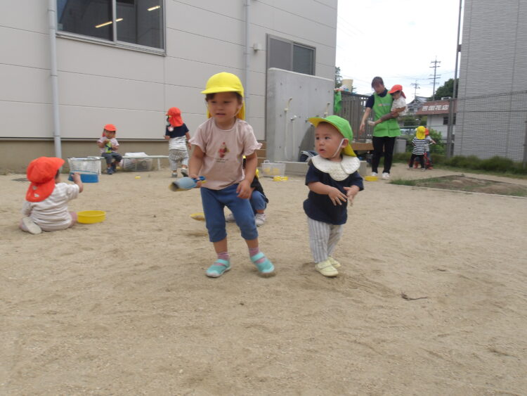 過ごしやすい気候になってきました!そんな日はお外に行かなきゃ!みんなで靴を履いて… 園庭へ!