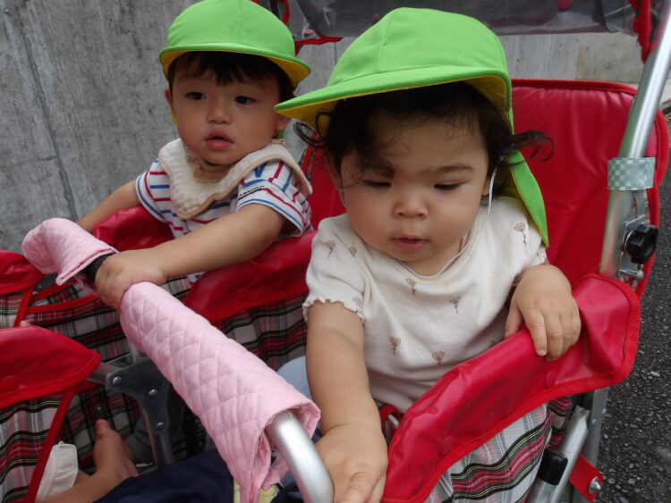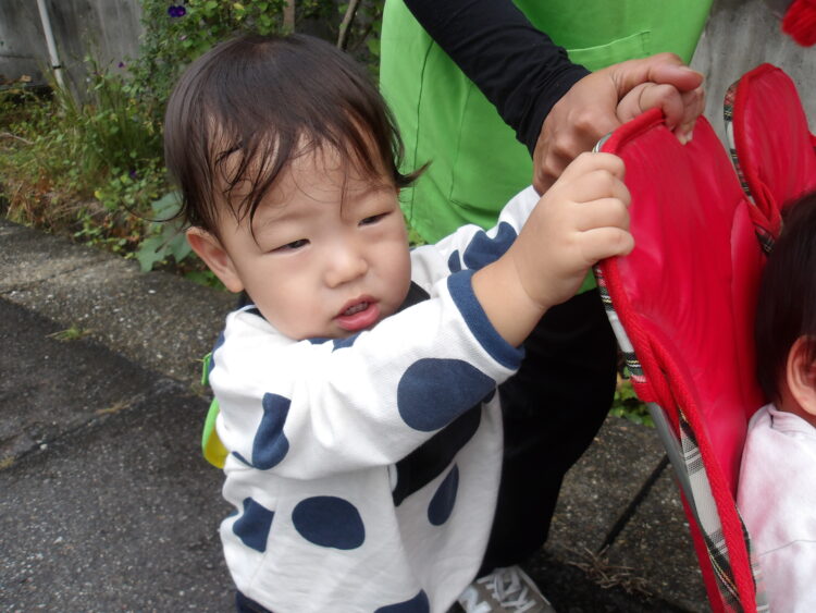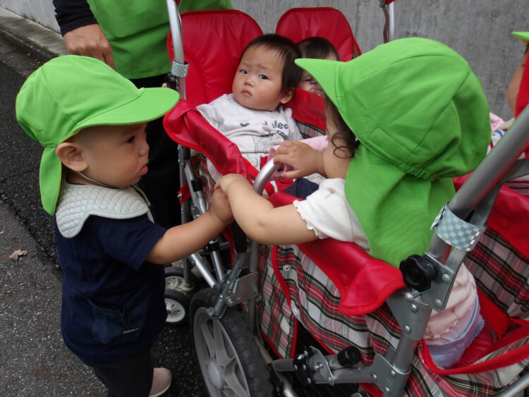 歩けるお友だちは、保育士と手を繋いで歩きました