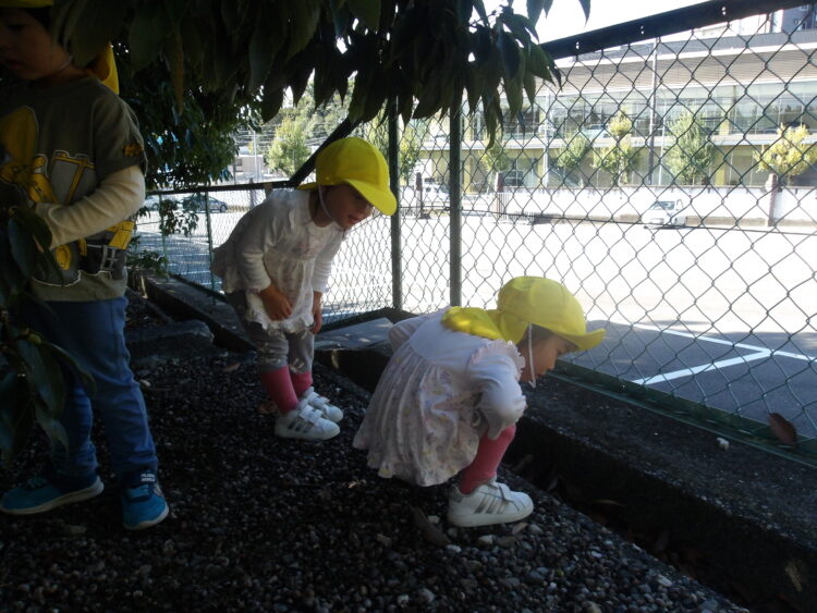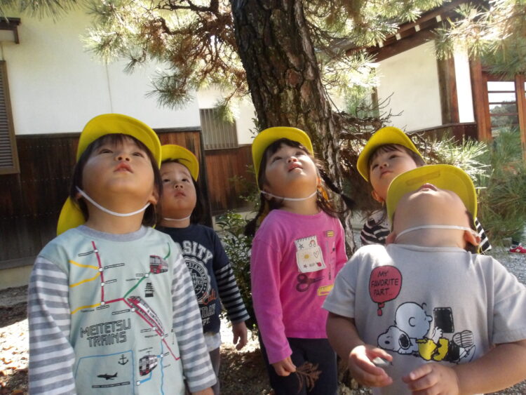 朝晩は寒くなってきてこの時期らしい気候になってきましたね。昨日の雨も上がり本日は晴れやかなお天気!ひよこ組、あひる組、うさぎ組で舎利殿に出かけましたよ。元気いっぱい走って体を動かしていますよ!