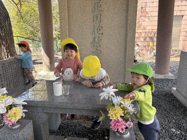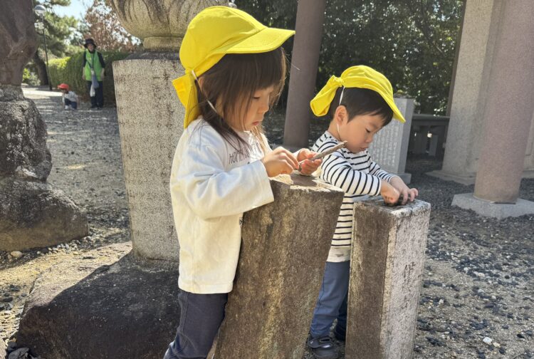 今日はうさぎ組さんとそら組さんで舎利殿にお散歩に行きました!
