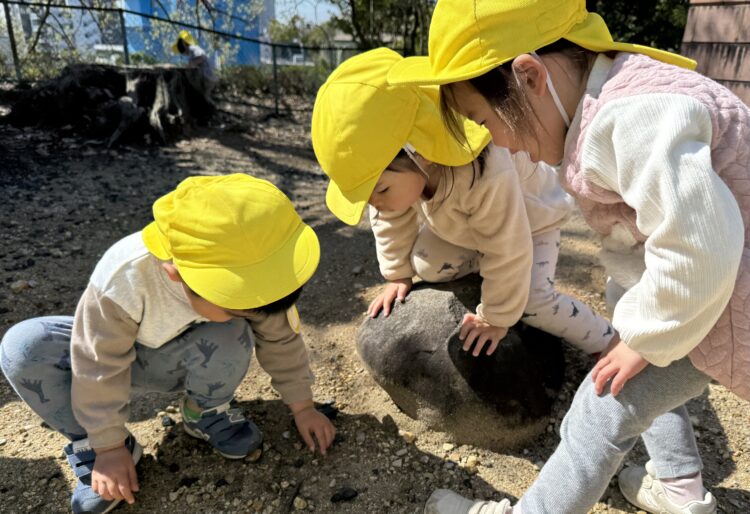 虫を見つけたらみんなで観察したり、触ったりする様子も見られました🤭