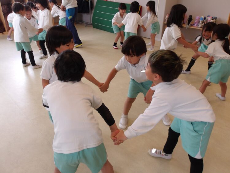 今日はいっぱい、たいよう組のお姉さんがそら組のお友達を連れて手を引いて遊んでくれたね!!