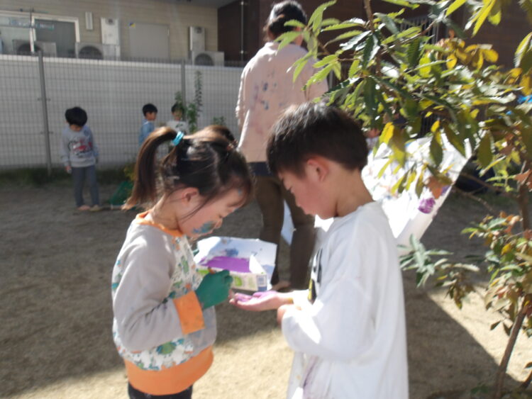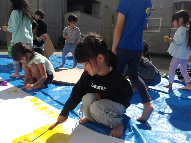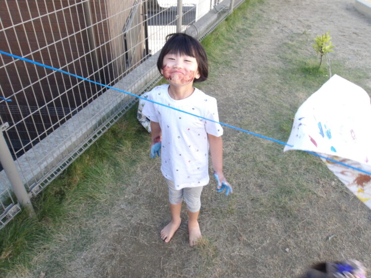 普段なかなかすることのできない面白さ!全身絵の具だらけになって楽しみました😊