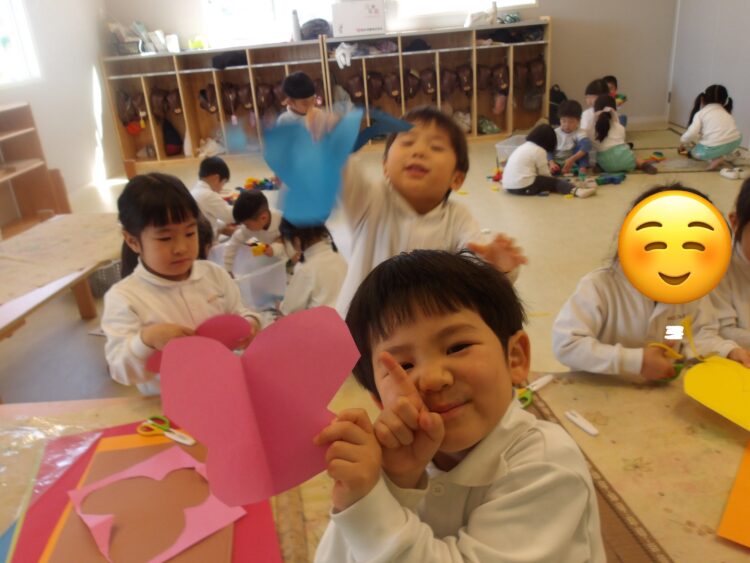 製作では画用紙に蝶々🦋の型をとり、線に沿って上手に切り進めていきました✨