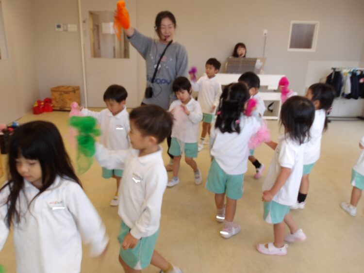 ハロウィン🎃をテーマに、スカーフのランプを持って森の中を歩きました!その途中で魔法にかかっておばけ👻になったり、フランケンになったりしました!みんなノリノリでいろんなものに変身していました!