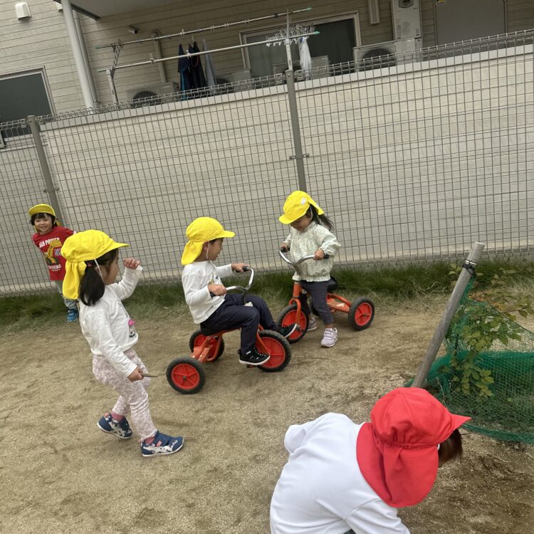 鬼ごっこやおままごとをしたり、ストライダーを貸し借りする姿も見られました👀