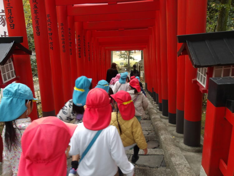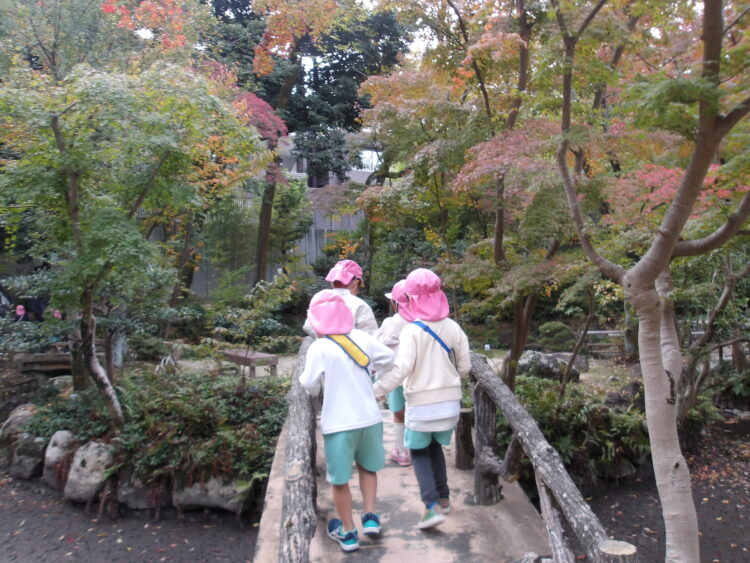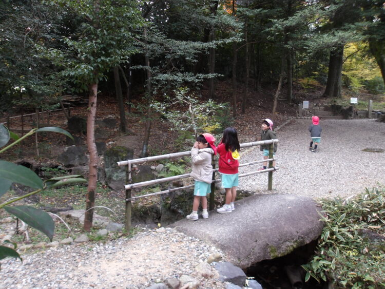 赤く染まった紅葉🍁や池にいた鯉にみんな興味津々👀