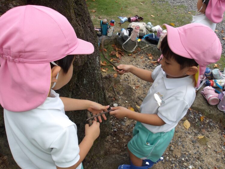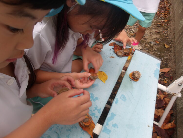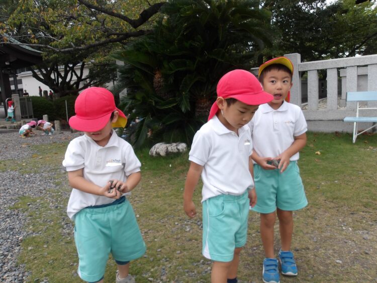 鬼ごっこをして思い切り走ったり、大きなどんぐりを見つけて先生に教えてくれたり、木の棒や葉っぱを拾って観察するなど、それぞれ楽しい時間を過ごしました🍂