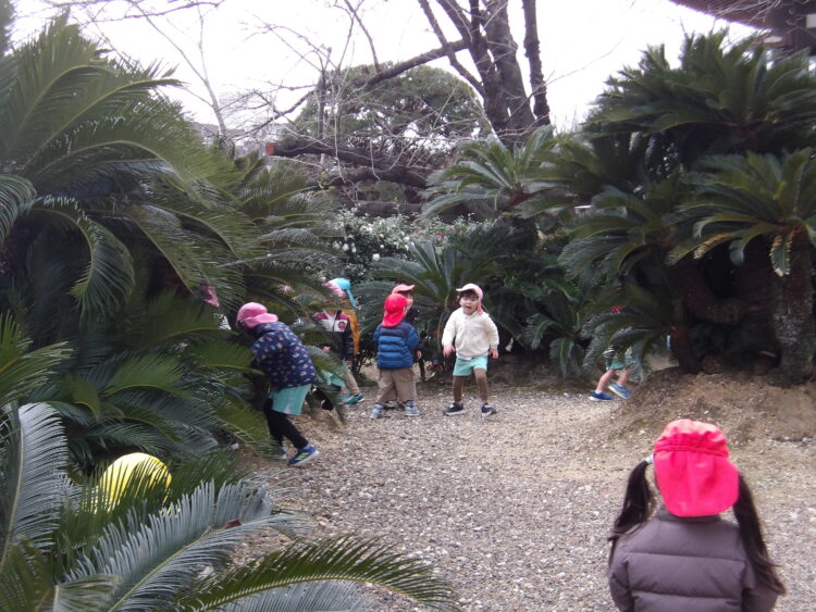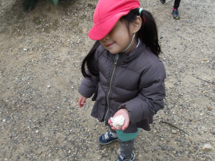 どんぐり探しをしたり、綺麗に咲く花💐を見つけてうっとりしたり、鬼ごっこをしたりして遊びました!