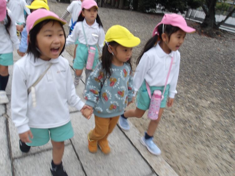 今日はうさぎ組、そう組、にじ組のみんなで舎利殿へお散歩に行きました!