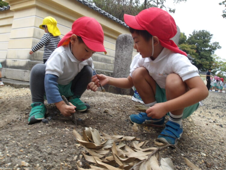 舎利殿に着いてからはどんぐりや松ぼっくり、落ち葉などを拾い、秋の自然に親しむことができました🍂