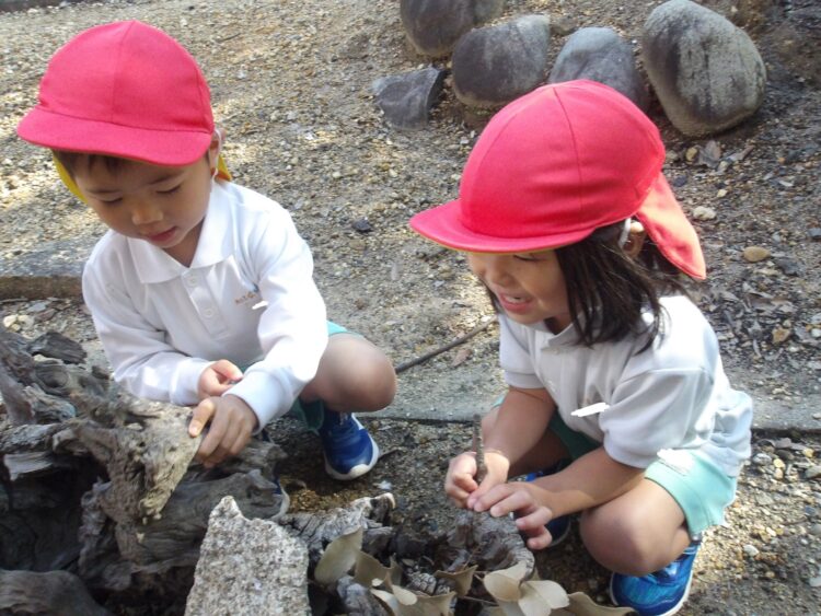 虫探しをするお友だちやどんぐりや松ぼっくり、木の葉🍁をたくさん集めているお友だち、鬼ごっこをしているお友だちなど様々な楽しみ方をしました!