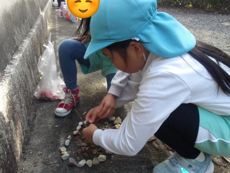 秋の自然物でいっぱいになった袋を自慢げに見せてくれるお友だちもいました👀