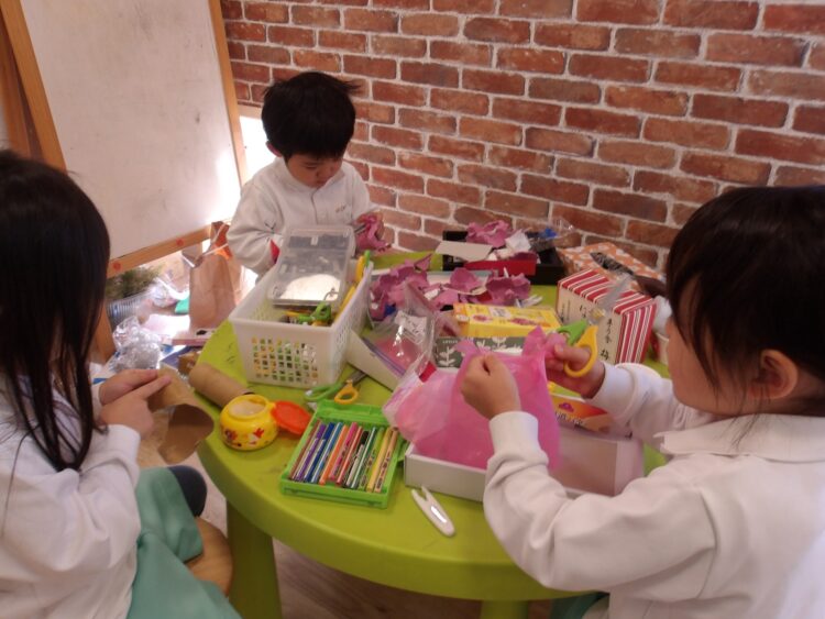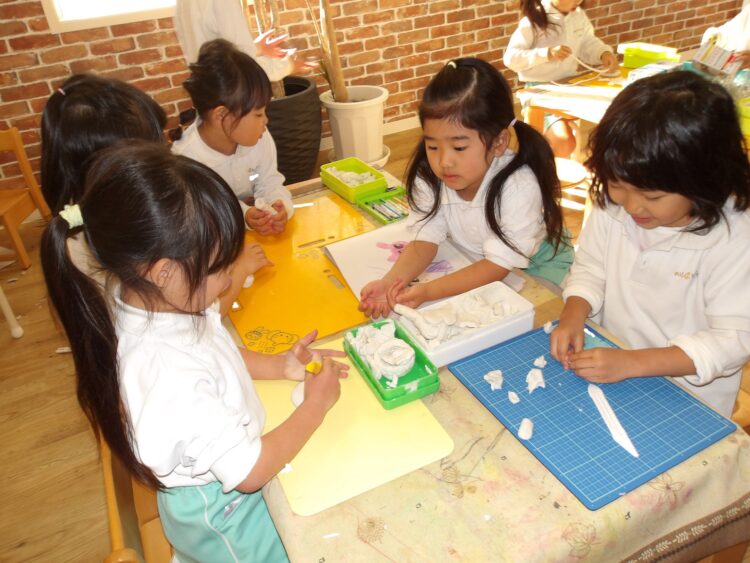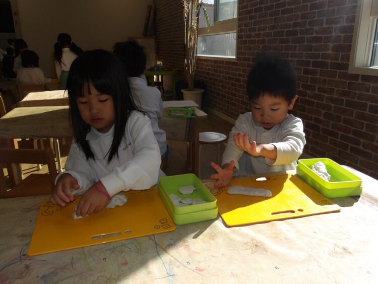 室内では粘土遊び、自由画、製作とそれぞれ好きなことをして過ごしました