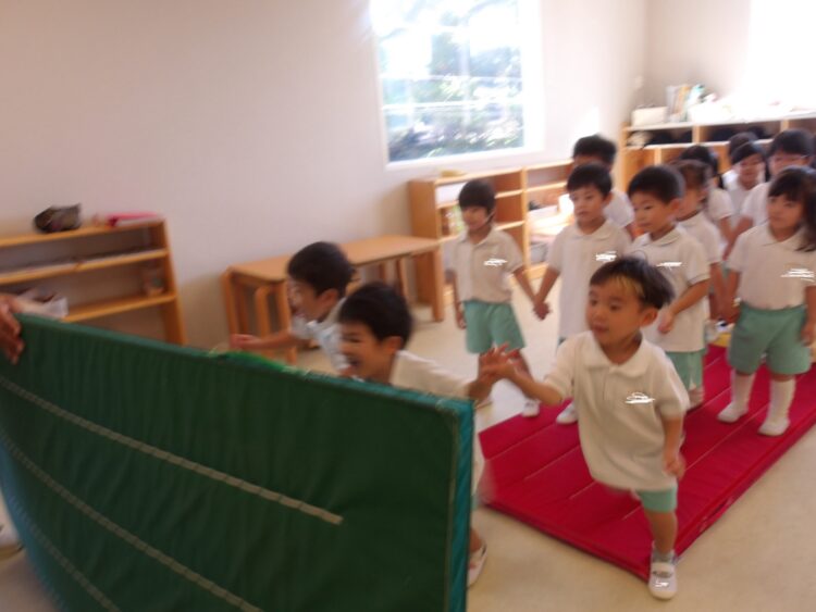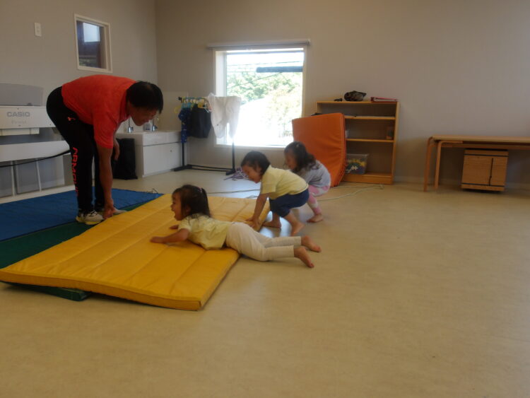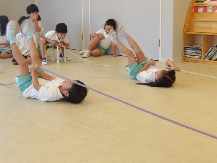 にじ組は引っ張ったり、押したり、捕まり続けたりと腕の力をいっぱい使いました💪