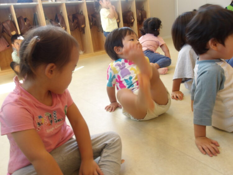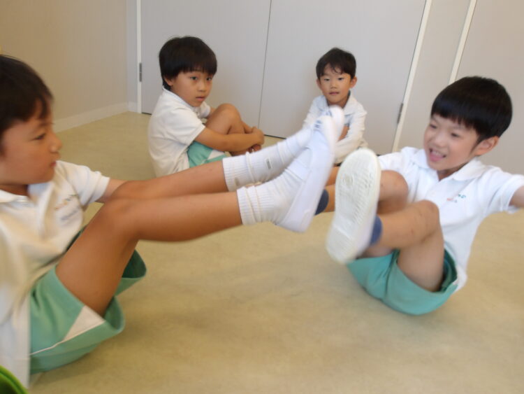 そら組はジャンプしたり、手の力を使っていろんなチャレンジをしました!