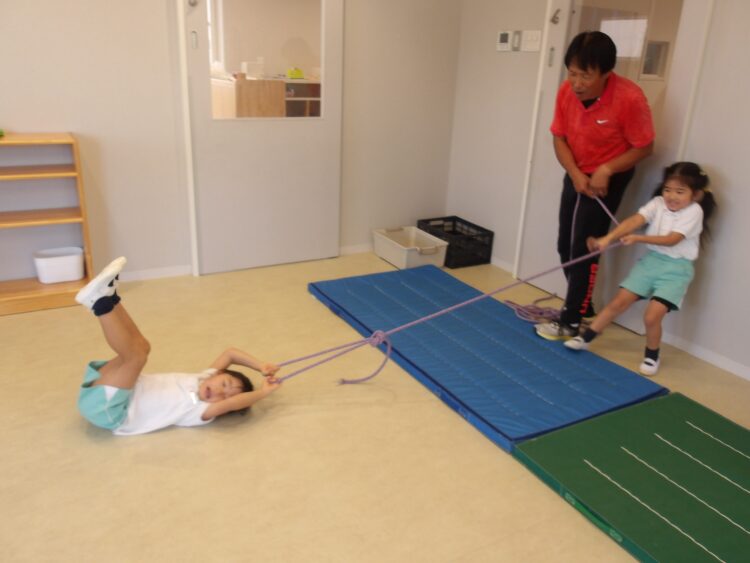 最後はみんなで体操の先生が持っているマットを押していきます💪
