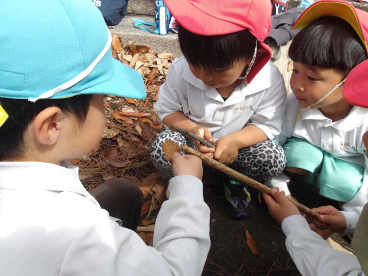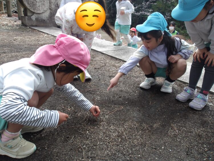 他にもアリやてんとう虫を見つけてお友だちと観察する姿がありました👀