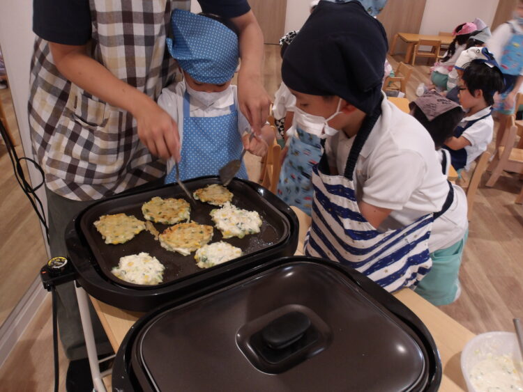 ソースと鰹節をかけてお好み焼き焼きを作りました✨
