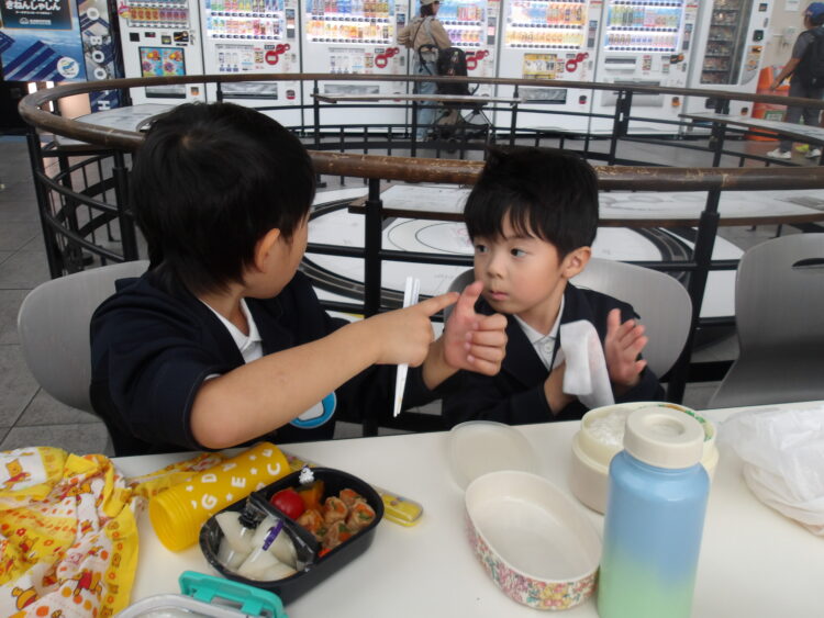 初めてのたいよう組でのお出かけ、緊張気味の様子、、
