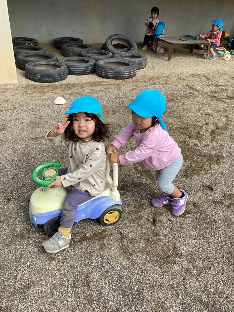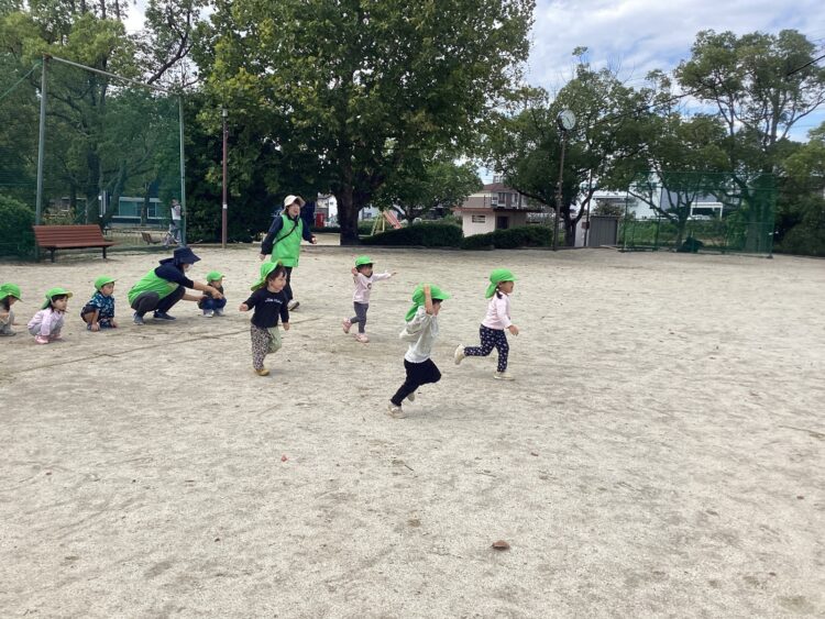 にこにこさんとすくすくさんは園庭で遊びました![]()