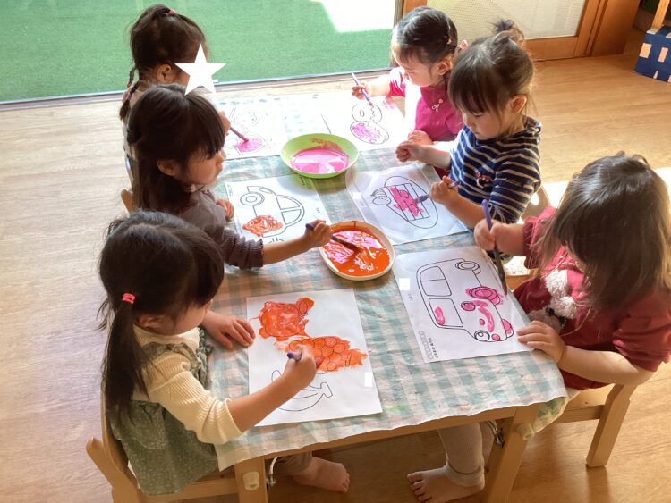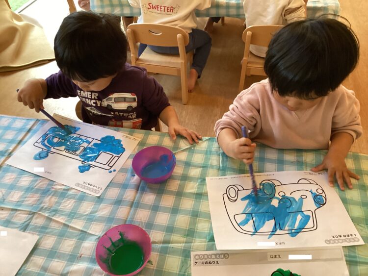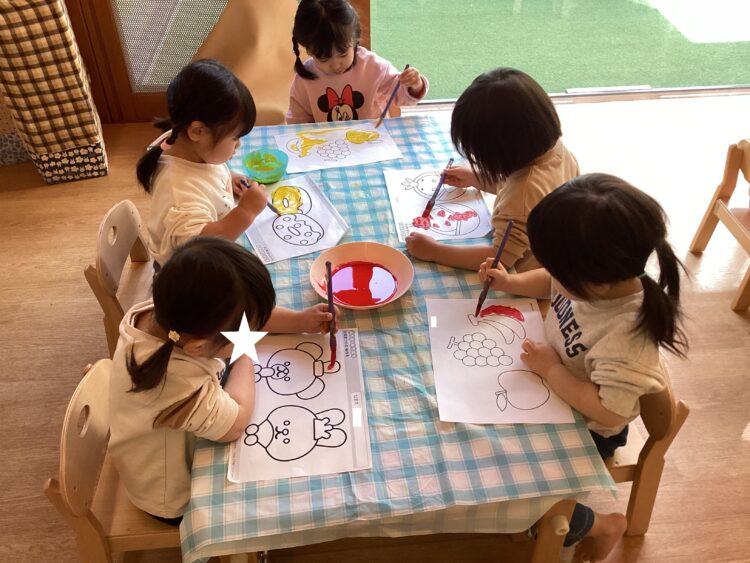 絵柄や色を自分で選んで 筆を使って塗ってみました