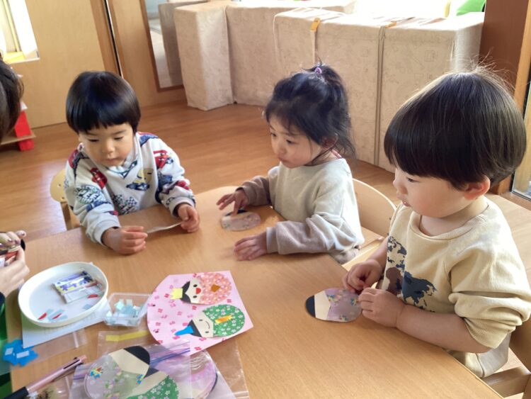 すくすくさんは、お雛様のおめめやお口をシールで貼って完成させました