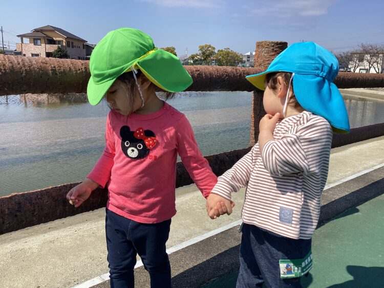 仲良く手を繋いで、歩きます![]()