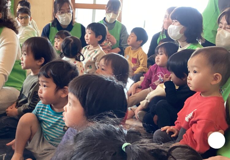 にこにこさん・すくすくさんは、カーペットに座って参加しました。