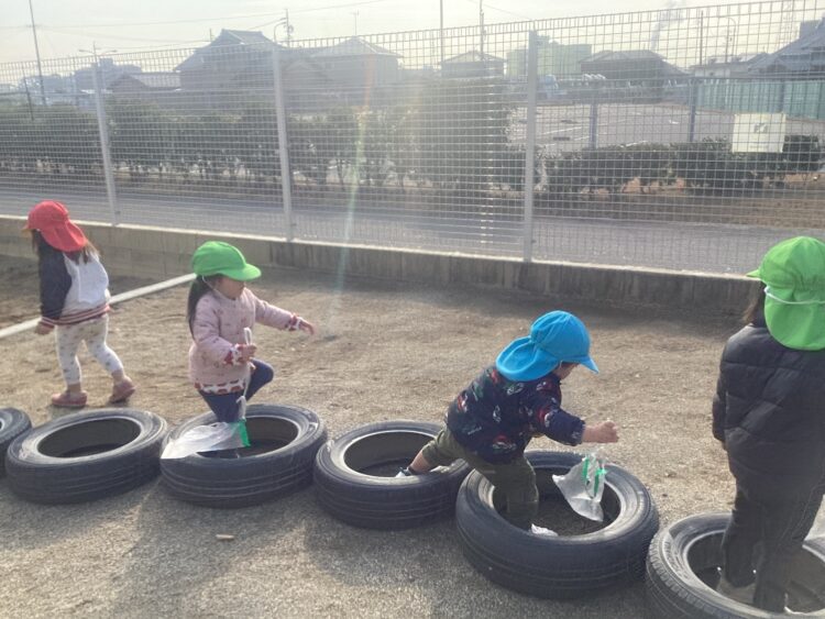 みんなでタイヤの橋を渡ったり🌈