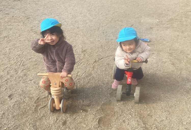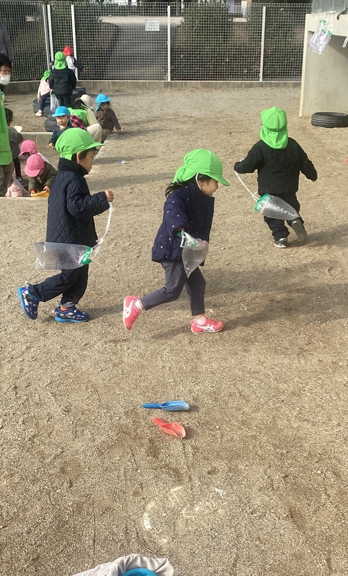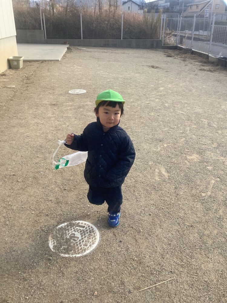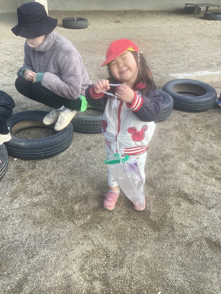 今日は園庭でビニール凧あげを楽しんだり🪁