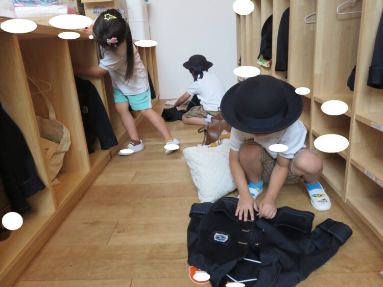 今日から衣替えで、身支度の仕方がかわりました!どうやってやるの?と保育者やおともだちに聞いたり、教え合ったりする姿も見られましたよ