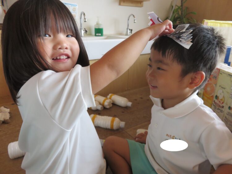 広告遊びや、ハロウインバックなど作ってニッコリおしゃべりもはずんでいましたよ