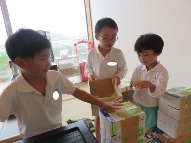 完成すると「お茶をどうぞ。」「おいしい!」と言ってお茶の時間を楽しんでいましたよ。