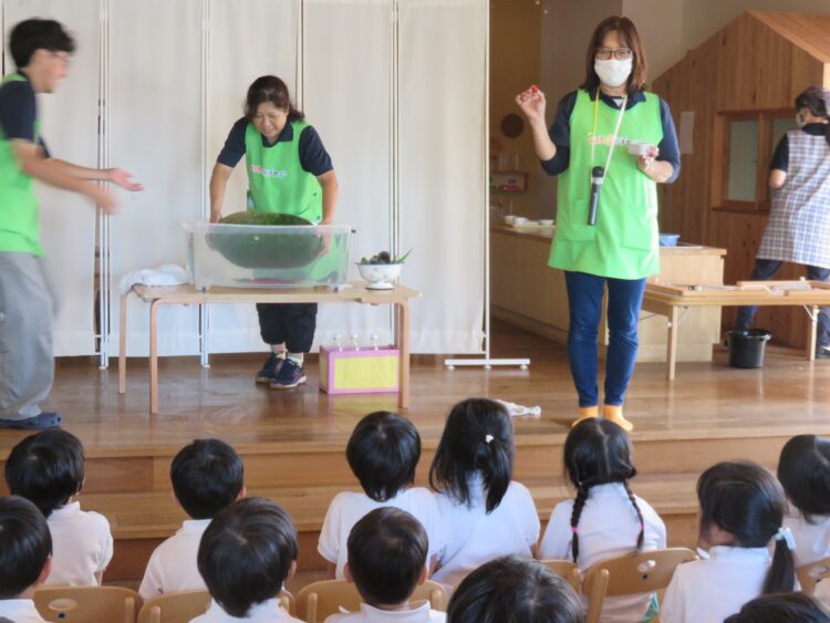 土の上で育つ野菜は浮いて、土の中で育つ野菜は沈むことが分かったね!
