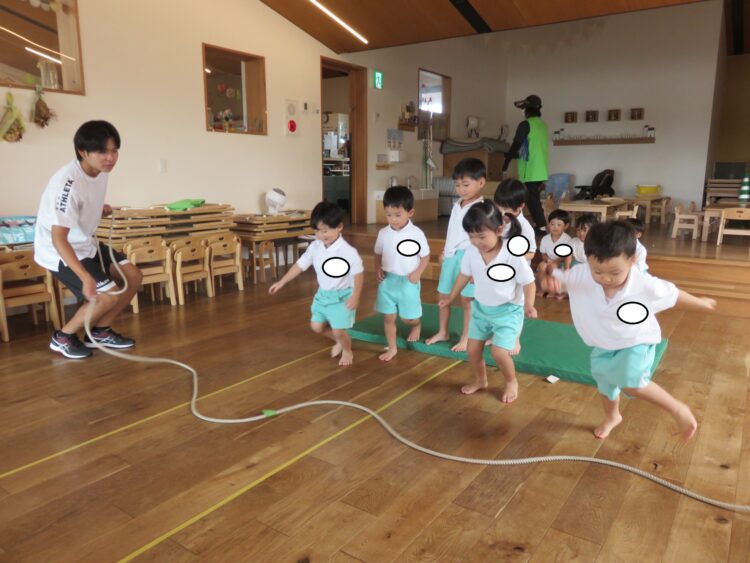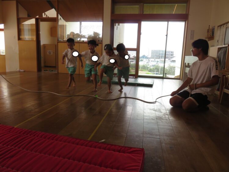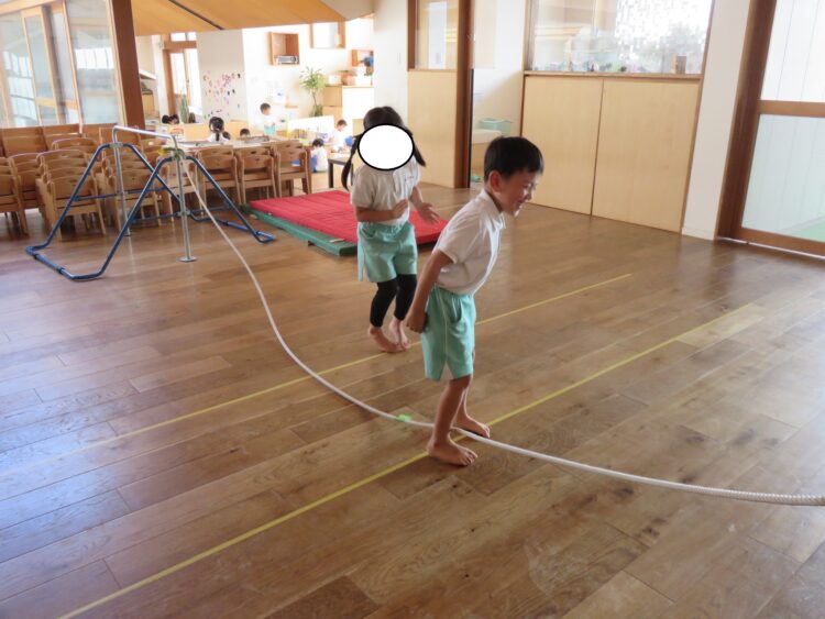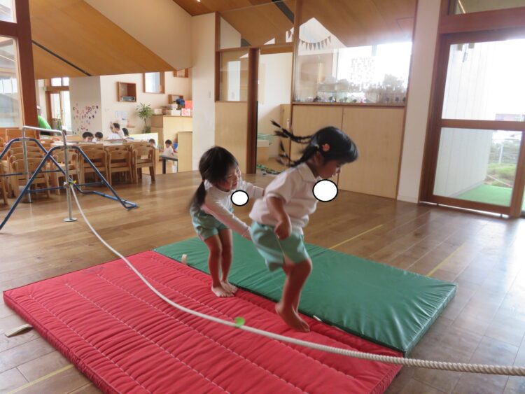 ユラユラしている上をジャンプ!引っかからないように飛びます!