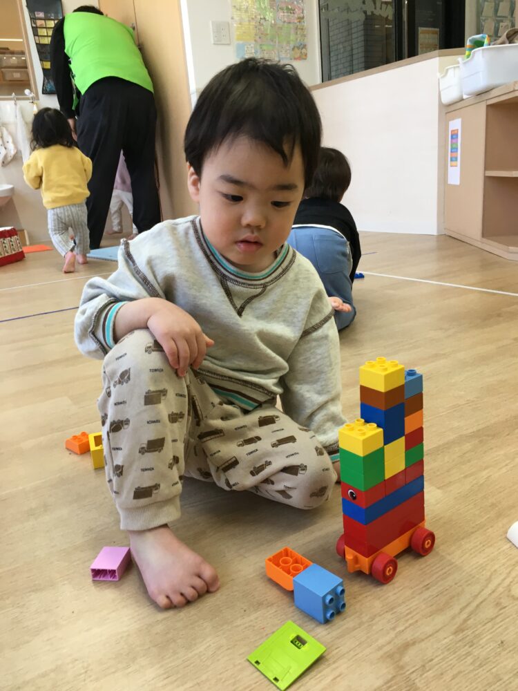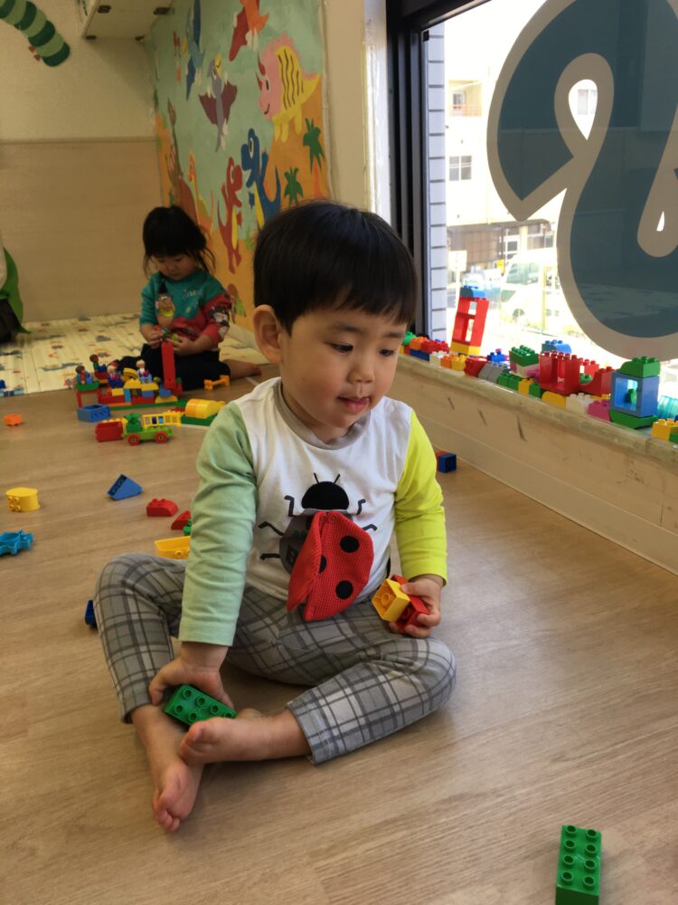 ブロックでお家を作ったり、車を作ったり、窓際に並べたりと、様々な姿が見られました😊