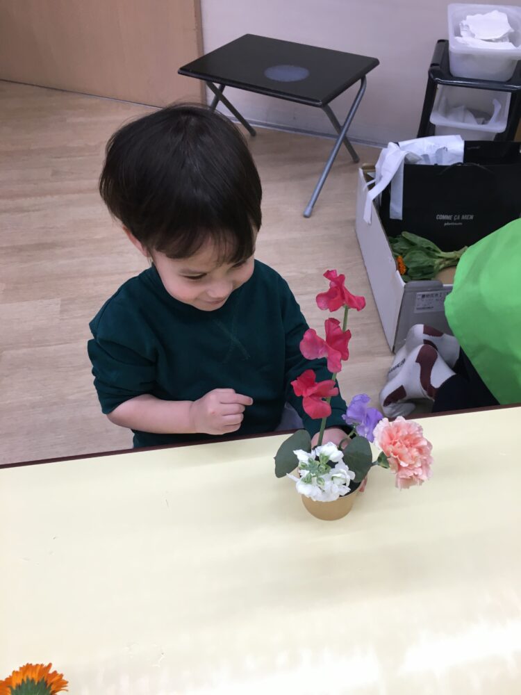 どのお花を挿そうかなと考えながら、それぞれ真剣に、でもとても楽しそうにお花を生けていました。