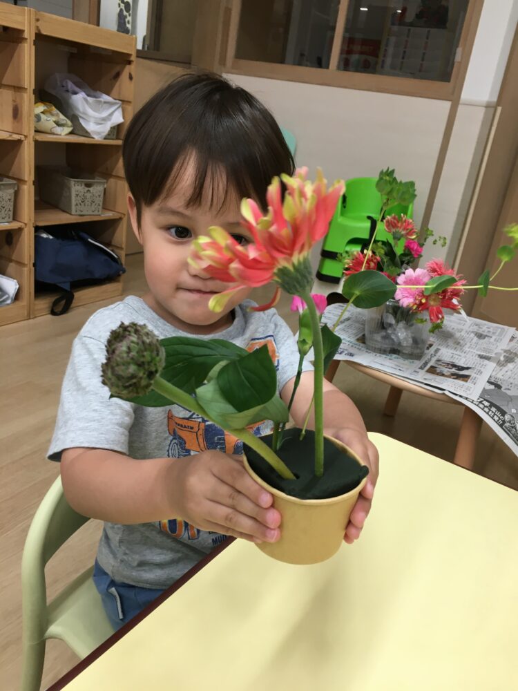 お花の名前を教えていると、「欲しい!欲しい!」と早くやりたい気持ちが表に出ていましたよ😍