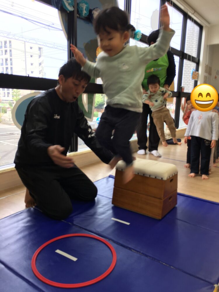 跳び箱からフラフープに向かってジャーンプ💨