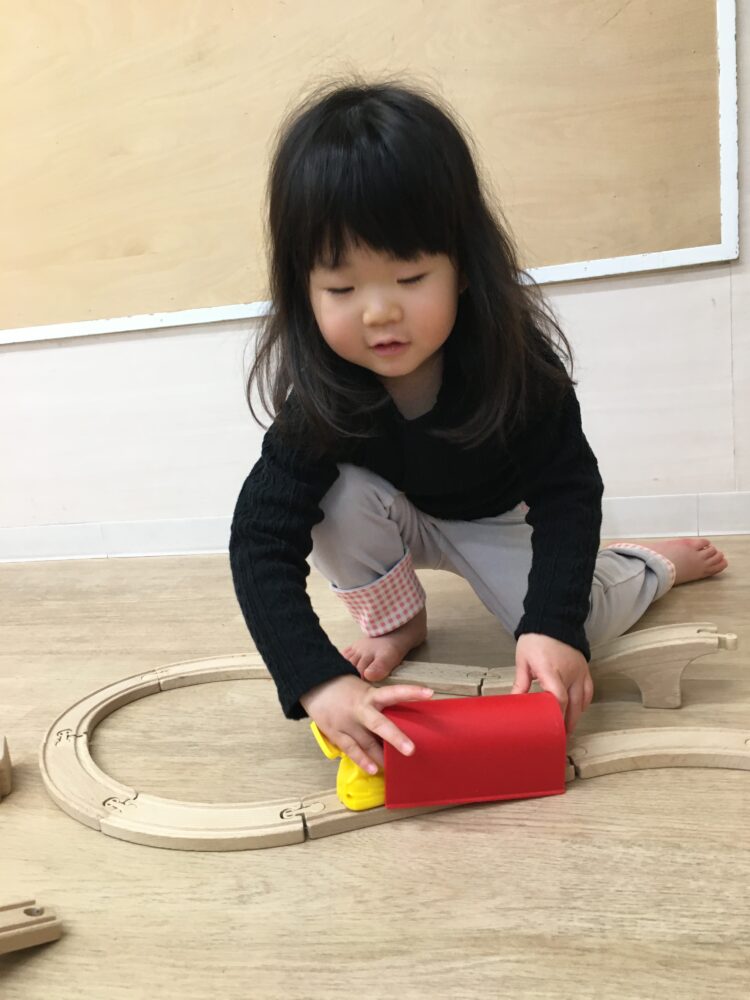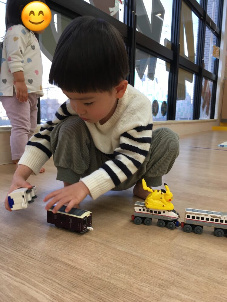電車にお客さんを乗せて遊んでいるお友だちもいました🚃