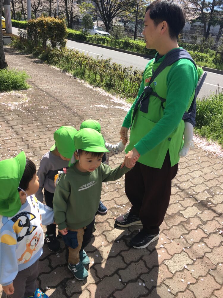 さらに、満開の桜も見ることができ、みんな目を輝かせていました。ひらひらと舞う花びらを追いかけたり、見上げて楽しんだりと、春ならではのひとときを過ごしました。