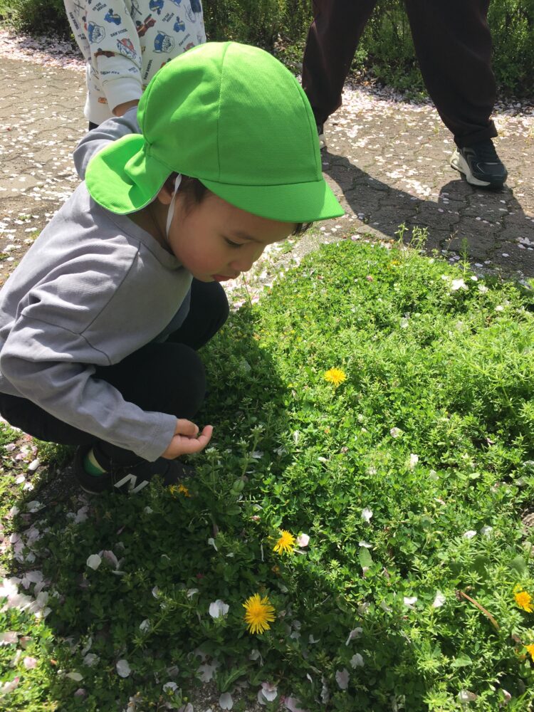 ぽかぽかと暖かい陽気の中で、子どもたちは春を身体いっぱいに感じている様子でした。