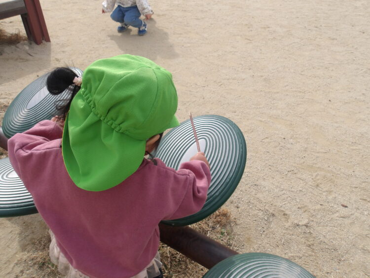 カンカンカンと木の棒を使い、色々な音を楽しんでいましたよ🎶