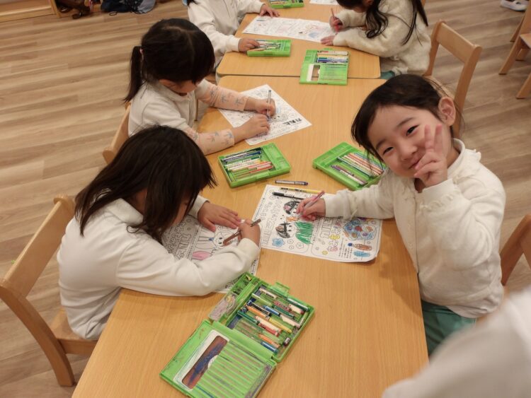ひなまつり会が終わっても、おひなさまの塗り絵を楽しんだり、歌を口ずさんだりしていた子どもたちです。